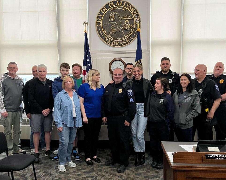 At the City Council meeting on May 6, 2024, Jon Hardy was promoted to the rank of Sergeant while being joined by his family, friends, and coworkers. Sgt. Hardy has been with the department for 23 years and brings a wealth of knowledge to this new position. He was pinned by his wife Lisa. Congratulations Sgt. Hardy!